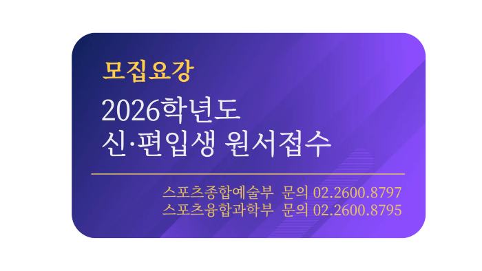 4차혁명시대에 무엇보다 중요해진 예술적 감성과 가치를 스포츠와 결합하여 무한한 부가가치를 창출할 수 있는 인재를 양성합니다.